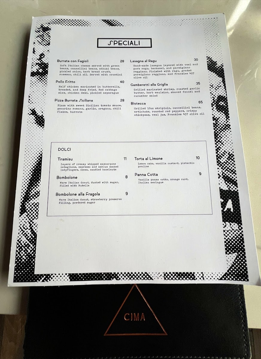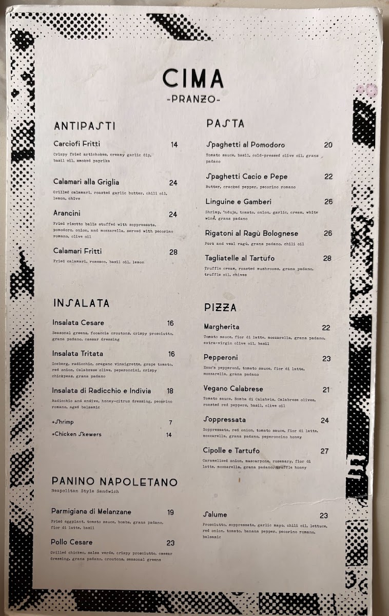 CIMA Enoteca Menu
