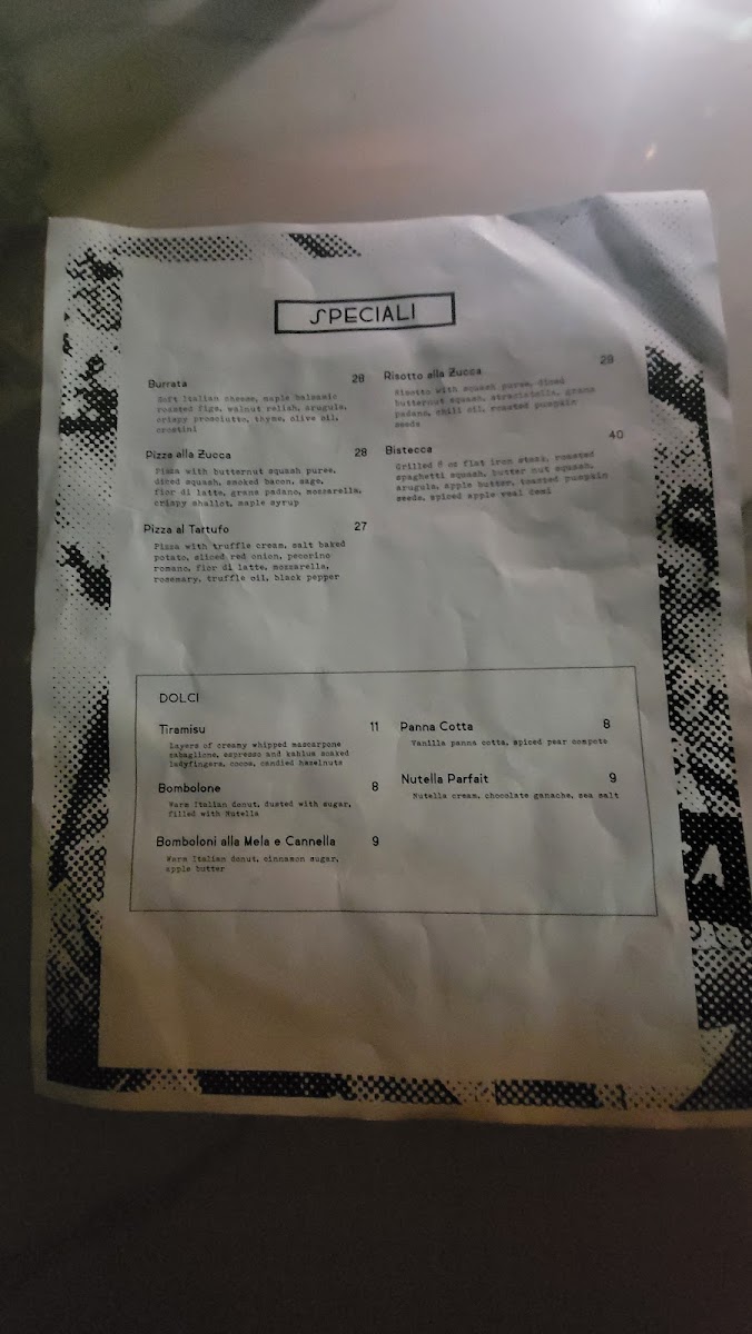 This menu is well suited for lunch or dinner occasions, offering both casual and more structured dining experiences. Visitors can expect a combination of quick order options as well as dishes designed for a leisurely meal. The presence of pizzas, pasta, salads, and antipasti supports a flexible dining style accommodating various preferences.